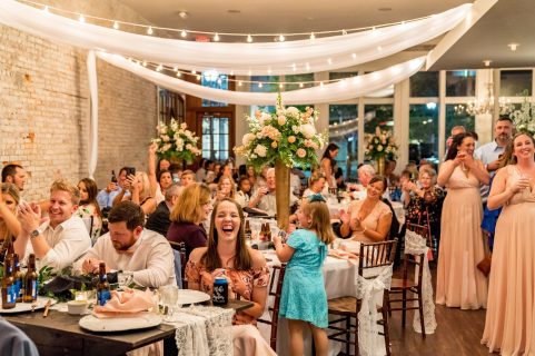 Afterwards, the guests headed to 5Eleven Palafox which was decorated beautifully by the amazing team at Supposey Co. Flowers covered nearly every surface, and the ceiling was draped with hanging bistro lights. Nancy’s Catering & Events provided the hors d’oeuvres and dinner while Jim of Jim Horn Entertainment kept the guests dancing throughout the night.